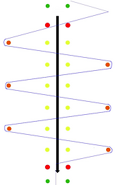 Slalom: Skiers cross the wake from side to side, skiing around six orange turn buoys and through the entrance and exit gates (see diagram, right). The boat travels in a straight line through yellow boat guides. After a skier completes a pass, the boat speed is increased by 2 mph and the skier is pulled back through the course. When the skier reaches his or her max speed (34 mph for women, 36 mph for men), the rope is shortened after each pass until the skier falls or misses a buoy. The score with the most buoys at the shortest line length wins!